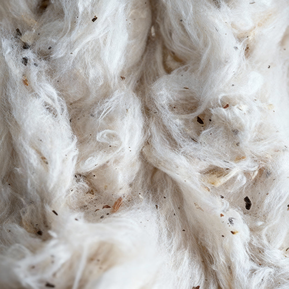Die sichtbaren kleinen Fasereinschlüsse sind ein Ergebnis dieser schonenden Verarbeitung und zeigen, dass der Stoff so nah wie möglich an seinem natürlichen Zustand bleibt.